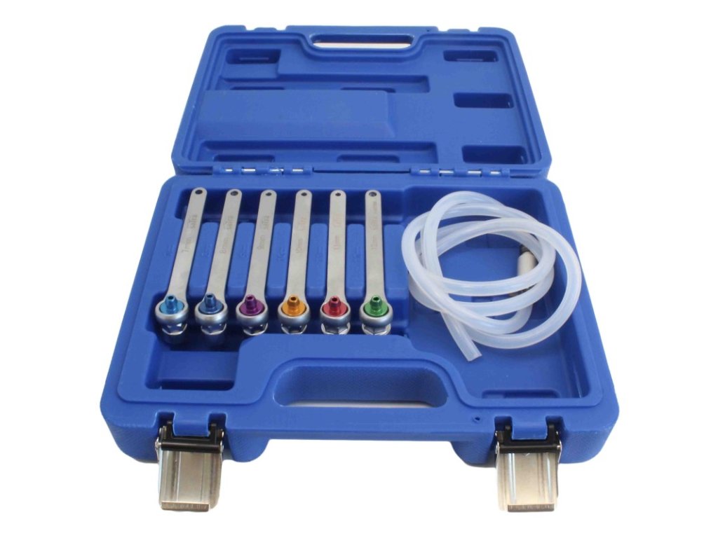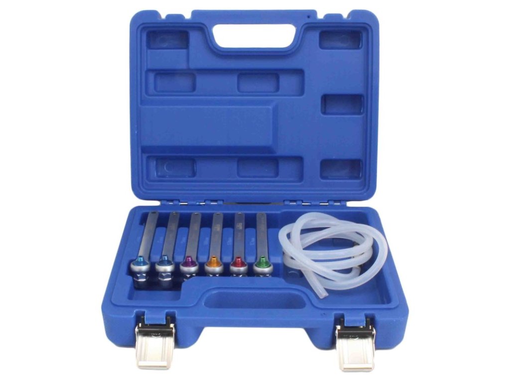 Přípravky na odvzdušňování brzdového a spojkového systému, univerzální, sada 7 dílů v plastové kazetě – SATRA S-XC7BB