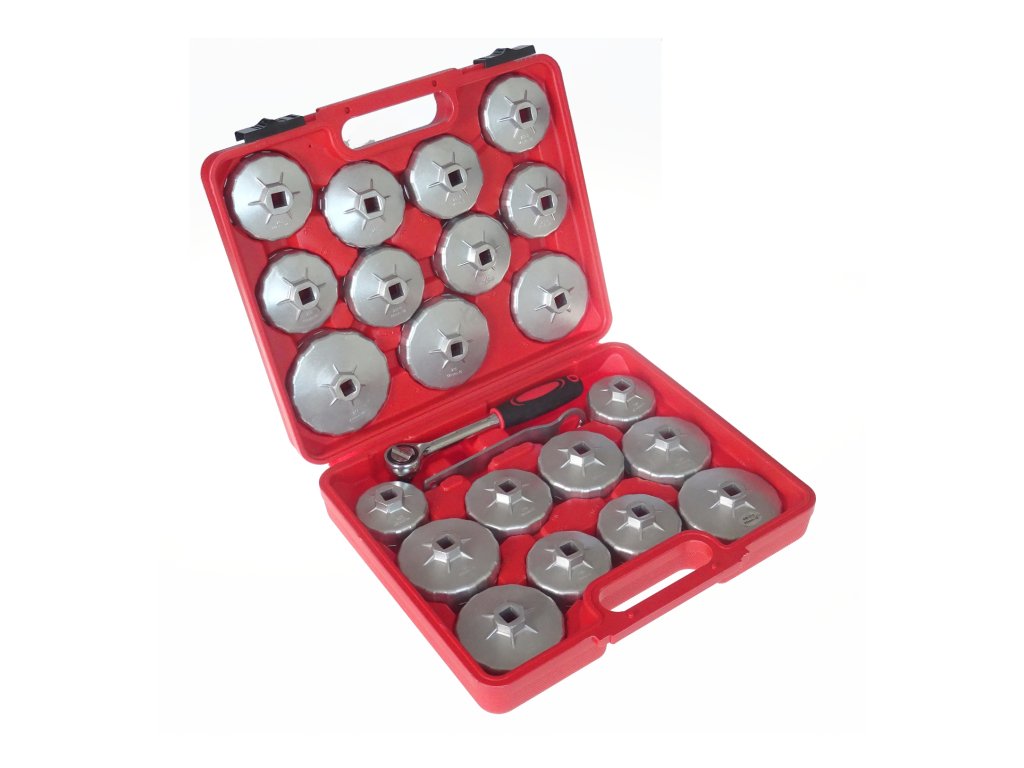 Klíče miskovité – hlavice na povolení a utažení olejových filtrů, sada 23 dílů v plastovém kufru – QUATROS QS64111