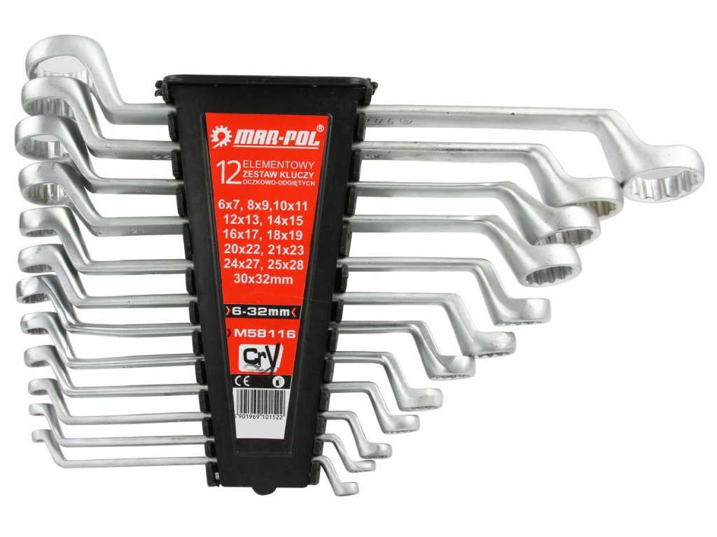 Sada očkových vyhnutých klíčů „trháků“ s rozměry 6-32 mm, Cr-V ocel, 12 ks v plastovém pouzdře.