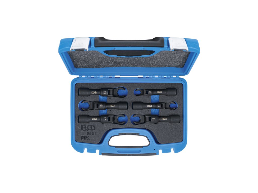Sada plochých kloubových klíčů, rozměry 12 až 19 mm, vodicí 4hran 1/2“, 6 dílů v plastovém kufříku s kovovými přezkami a pěnovou vložkou - BGS technic 6931