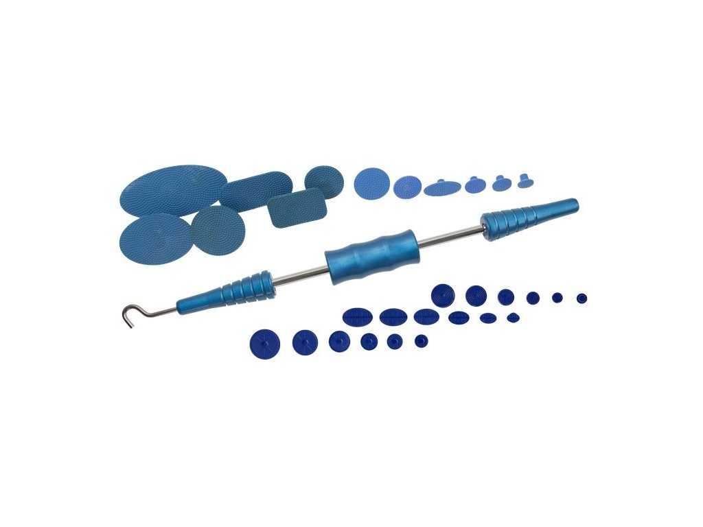 Kluzné vytahovací kladivo oboustranné se sadou vytahovacích adaptérů pro odstraňování promáčklin karosérií.