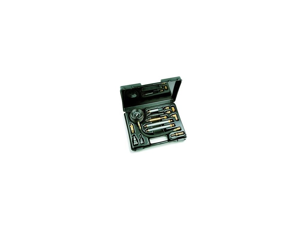 Přesný přístroj pro měření kompresního tlaku ve válcích zážehových i vznětových motorů má tlakoměr 0-4,0 MPa (0-40 bar) a pružnou hadici dl. 30 cm s rychlospojkou. Pomocí ní lze snadno připojit některou ze 13 koncovek pro měření komprese ve válcích zážehových i vznětových motorů. Jde o závitovou koncovku M14x1,25/M18x1,5, adaptér M12x1,25 (benzin), M12x1,25 (diesel), M12x1,25 (VW-diesel), M10x1 (benzin), koncovku s pevným pryžovým kónusem, další koncovku pro jiné výrobce ET 36, adaptér pro vznětové motory se závitem M14x1,25-M24x2 atd. Kompresiometr má vypouštěcí ventil mezi tlakoměrem a hadicí, což umožňuje opakovat měření komprese stejného válce bez nutnosti vyšroubování koncovky. Celá sada je umístěna v kufříku z umělé hmoty.