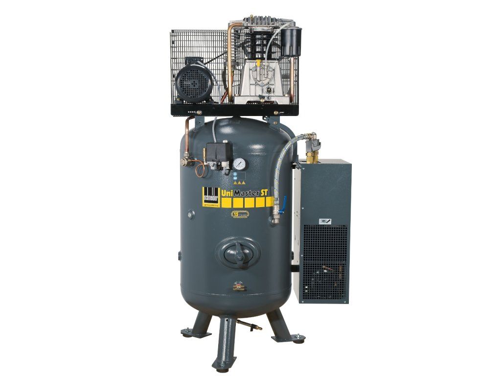 Stacionární kompresor se stojatým extra objemným vzdušníkem 270 litrů, napájení 400 V, dvoustupňová komprese 10 (15) bar – Schneider UNM STS 660-10-270