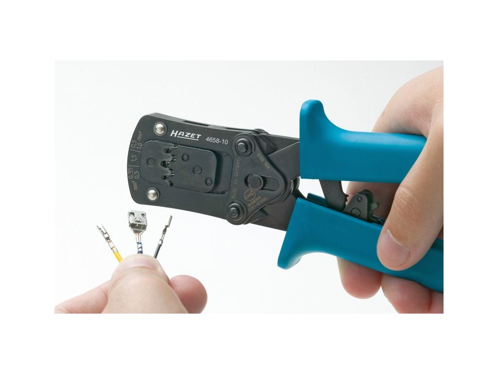 Konektorové, krimpovací kleště, pro neizolované konektory 0,35 - 1,5 mm2, s integrovanou západkou – HAZET 4658-10