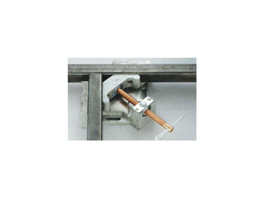 Kovová úhlová svěrka v provedení se dvěmi osami.