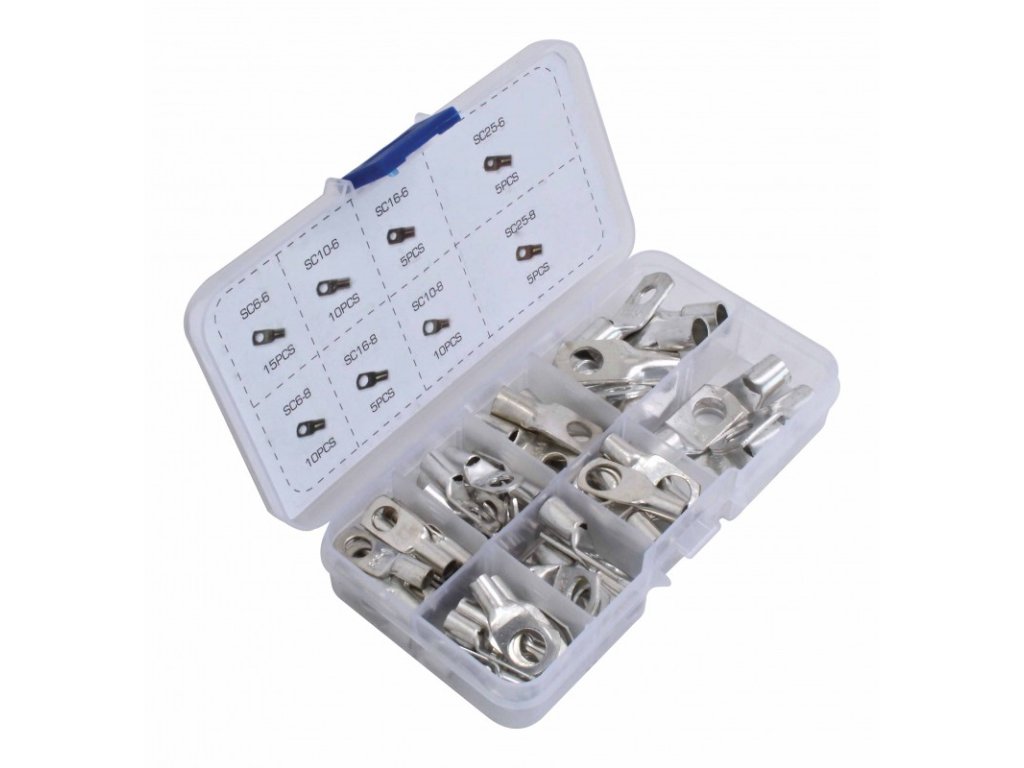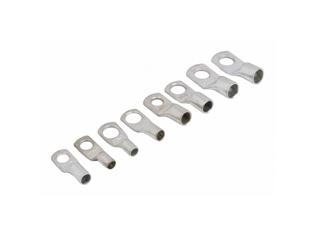 Elektrické lisovací konektory pro krimpování – lisování, očkové (kabelová oka), neizolované, měděné, sada 65 kusů v plastové krabičce – ASTA A-TC516.