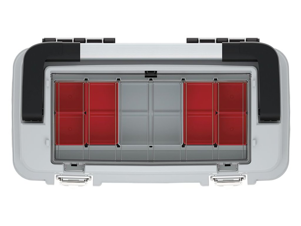 Pro pohodlnější manipulaci je organizér vybaven robustní ergonomickou hliníkovou rukojetí.