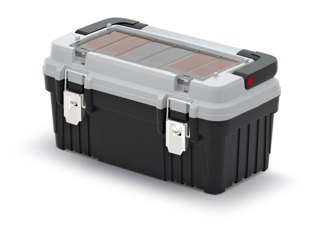 Kufr na nářadí 470 x 256 x 238 mm, s kovovým držadlem a zámky, šedý - Kistenberg