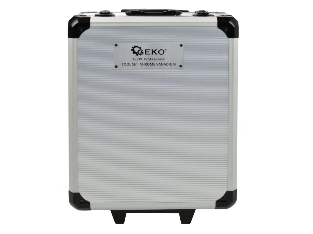 187dílná sada nářadí v pojízdném hliníkovém kufru – GEKO G10855