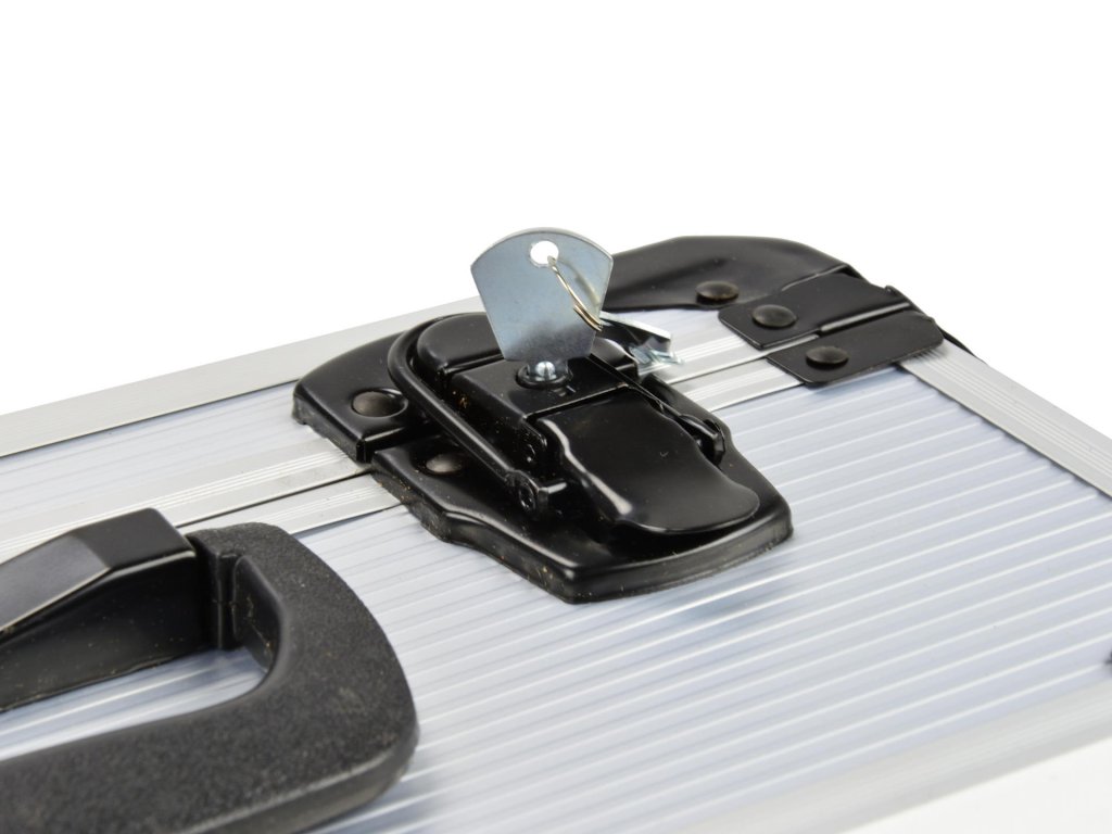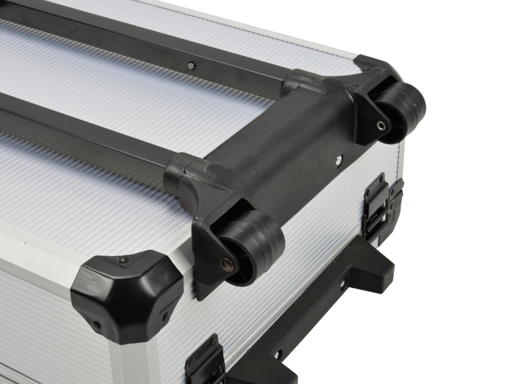 Dodáváno ve čtyřpatrovém, pojízdném hliníkovém kufříku s vysouvacím madlem a pogumovanými kolečky (stejný typ kufru jako cestovní typy). I přes váhu setu téměř 13 kg se dobře převáží a snadno skladuje. Kufr lze uzamknout, takže máte vybavení v bezpečí. Dva klíčky jsou součástí balení.