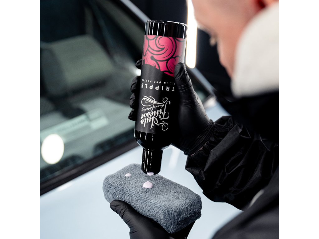 Výkonná formule Tripple je plná hluboce čistících rozpouštědel a rychle působících ubývajících abraziv. Tyto složky společně odstraňují i ty nejodolnější skvrny, oxidaci a další kontaminanty, které zmatňují váš lak. Jak se abraziva rozpadají, zjemňují lak a vrstvy čirého laku, eliminují lehké vady a zanechávají hladký, vysoce lesklý povrch. Díky tomu je Tripple vhodný pro moderní dvouvrstvý lak, vintage vrchní vrstvy a dokonce i lesklé plasty.