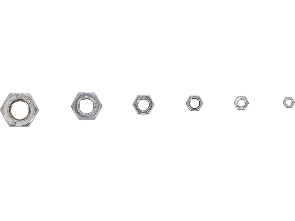 Šestihranné nerezové matice s metrickým závitem, rozměry M3 až M10, sada 300 kusů v plastové krabičce - BGS tecnic 74249