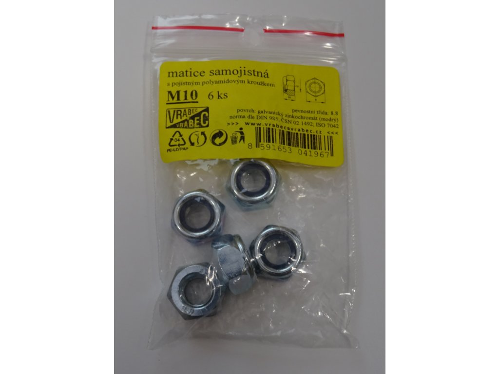 Matice 6hranné samojisticí DIN 985, pozinkované, různé rozměry