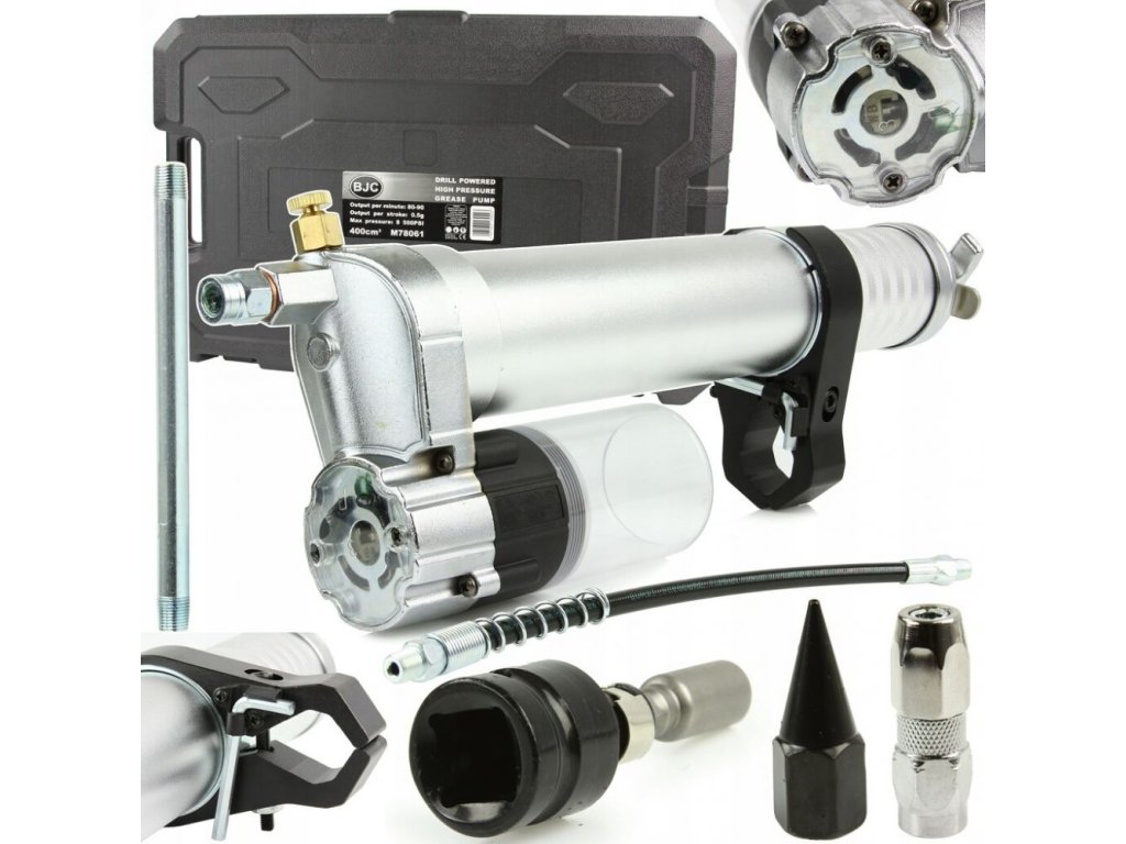Jedním z významných prvků je nástavec na odsávání tuku, který lze použít pro standardní nádoby na tuk, což usnadňuje údržbu a čištění. Maznice je rovněž kompatibilní s různými typy vrtaček a šroubováků, včetně vrtaček se příklepem a rázových utahováků. Držák zařízení je nastavitelný, což umožňuje používání elektrického nářadí o průměru od 3,80 cm do 7,6 cm, což dodává této maznici vynikající flexibilitu a široké využití ve vaší dílně či garáži. Celkově je maznice na vrtačku od BJC praktickým a spolehlivým partnerem pro údržbu a mazání vašich mechanických zařízení.