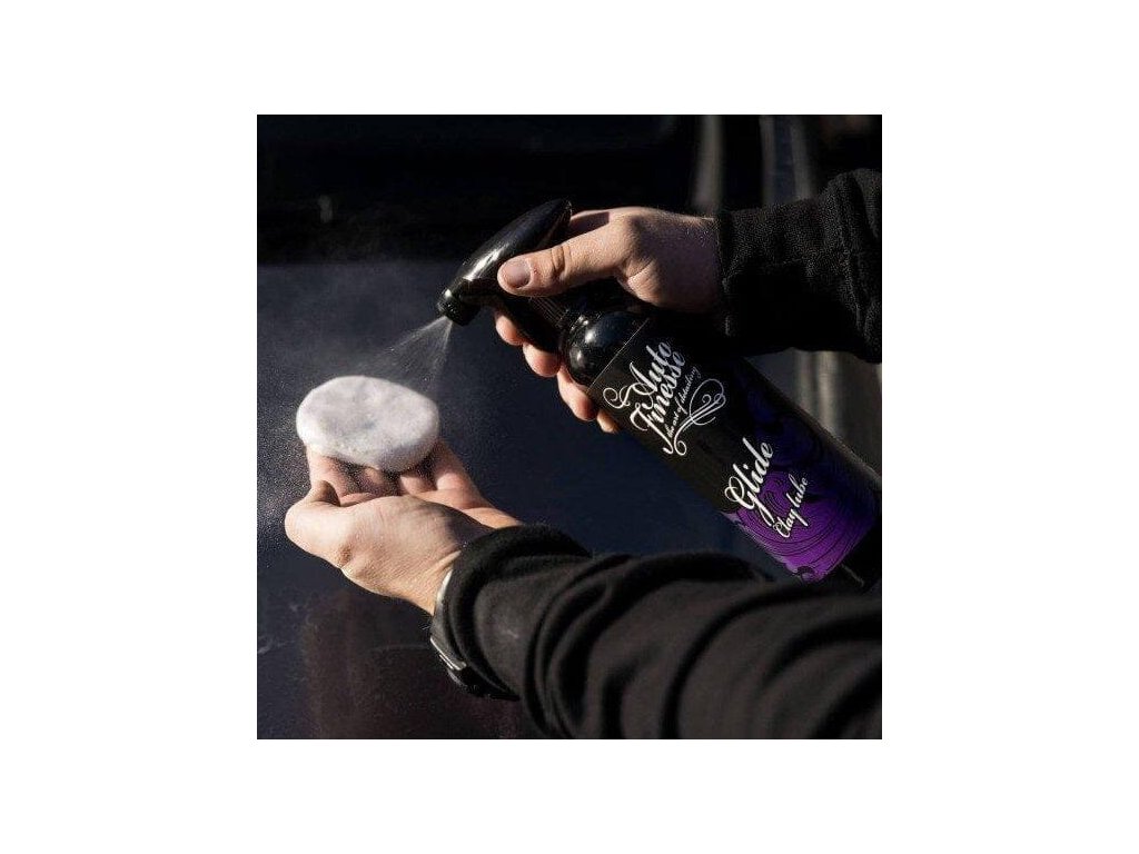 1. Čištění pomocí claye musí vždy začít lubrikací povrchu. Auto Finesse Glide je ideální pro tuto aplikaci, protože byl navržen pro použití v kombinaci s touto jílovou hmotou. Nastříkejte lubrikant hojně na povrch ne větší než 30 cm x 30 cm a pokračujte v aplikaci během celého procesu čištění, abyste udrželi mokrý film.