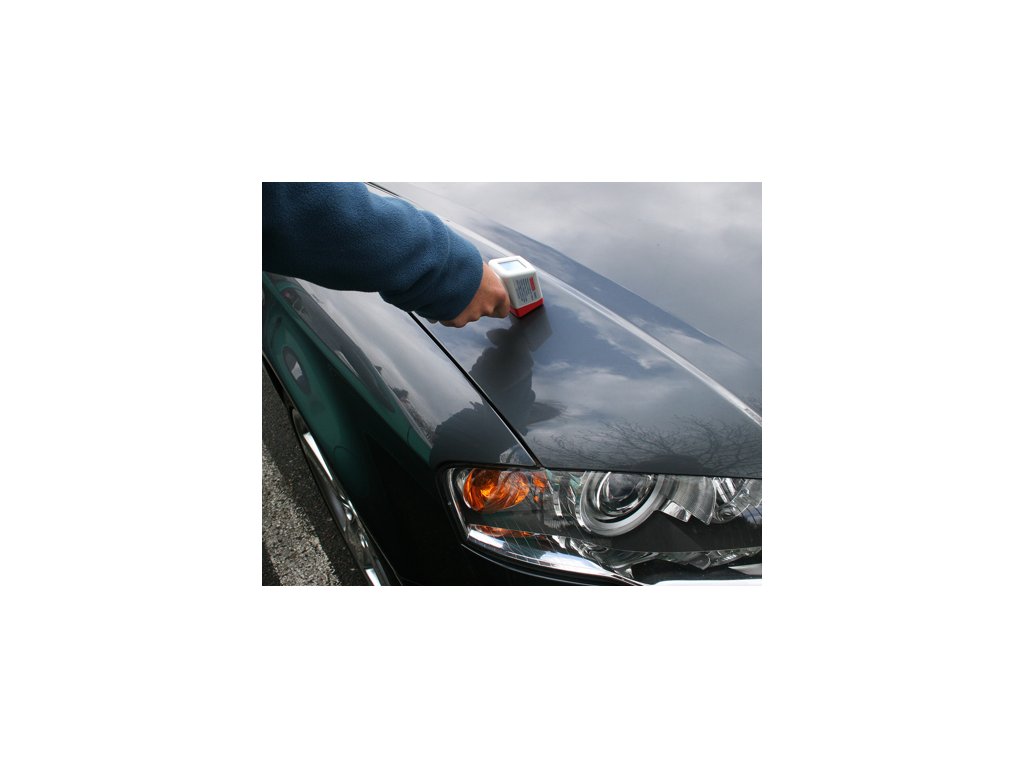 Digitální tester na kontrolu tloušťky autolaku. Rychle a spolehlivě zjistí, zda byla karosérie přestříkávána nebo jinak opravována. Stačí přiložit čidlo přístroje k měřenému povrchu a počkat. Díky pistolovému tvaru se velmi pohodlně drží, údaje jsou zobrazovány na přehledném displeji.
