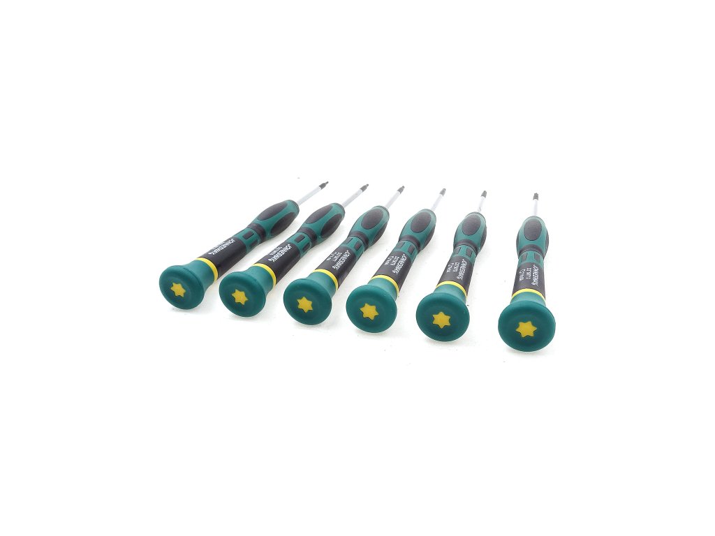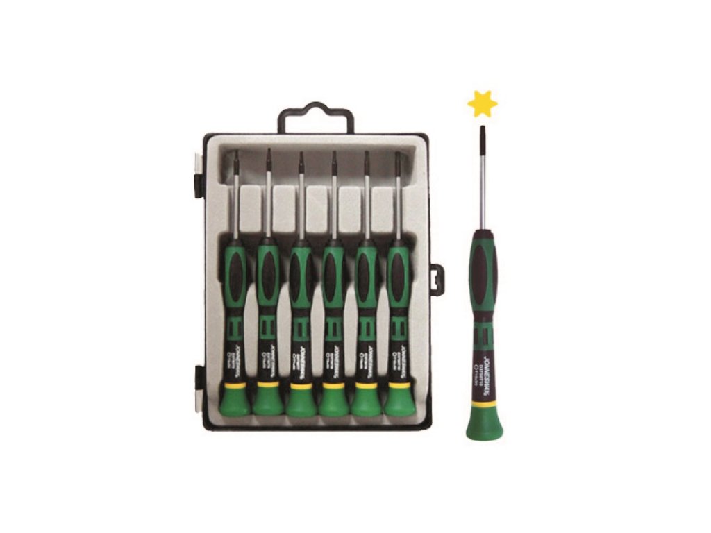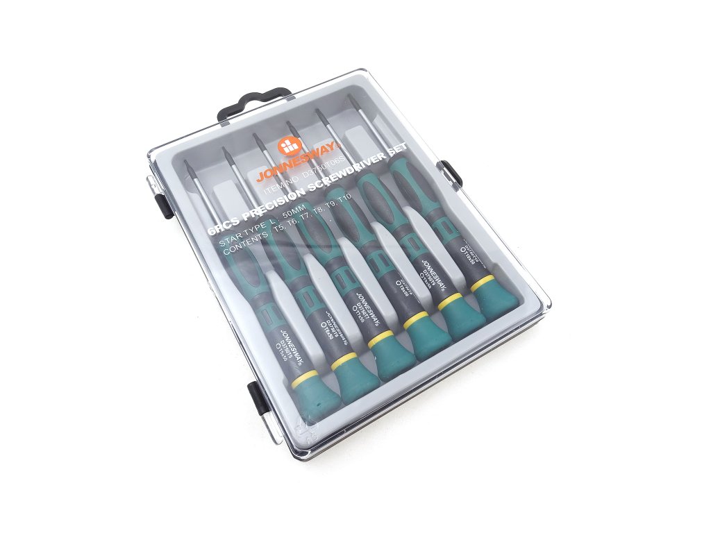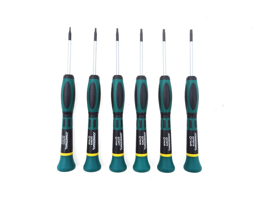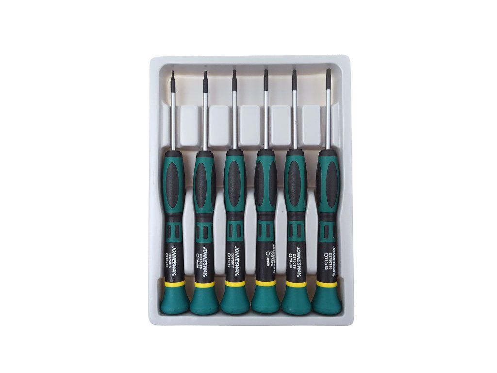 Souprava 6 mikro šroubováků (tzv. precizních, přesných šroubováků) profilu TORX, velikosti T5 až T10 – JONNESWAY D3750T06S