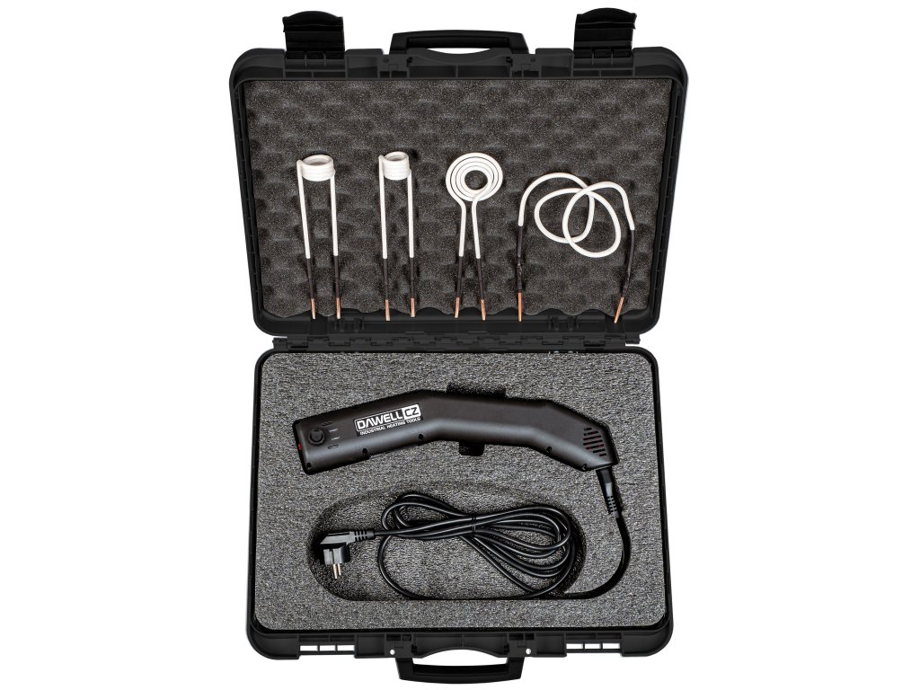 Přístroj na indukční ohřívání kovových dílů s výkonem 1,2 kW, kompaktní, se sadou cívek v plastovém kufru – DAWELL DCI-12 PKW.