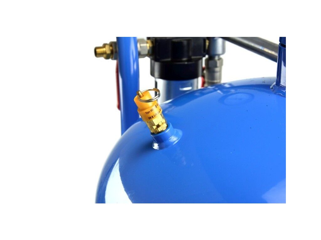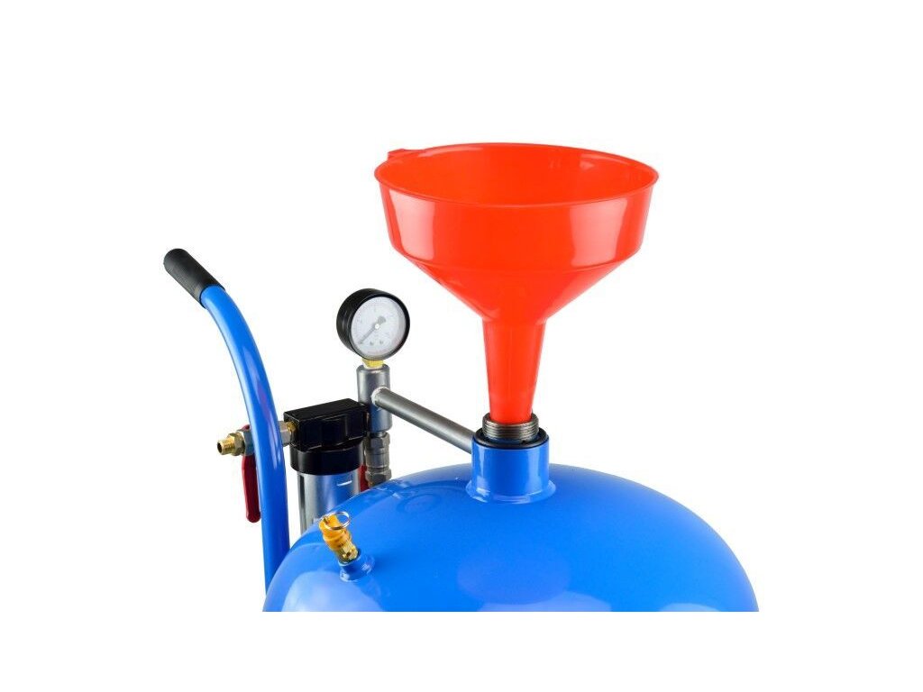 Součástí jednotky je plnící nálevka pro snadné plnění a nastavitelný ventil s regulací tlaku vzduchu.