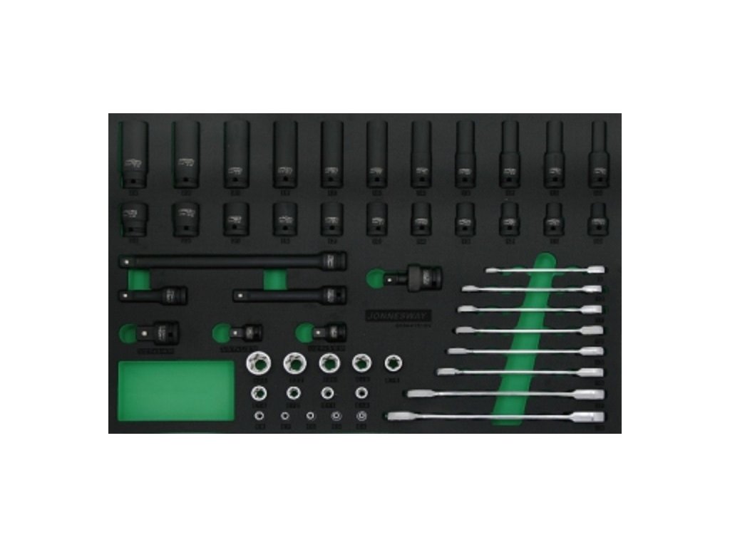 Pěnový modul EVA, vel. „C“ (570 x 380 mm): Gola sada s příslušenstvím, vodicí čtyřhrany 1/2”, 1/4” a 3/8”, 51 dílů – JONNESWAY S03A4151SV