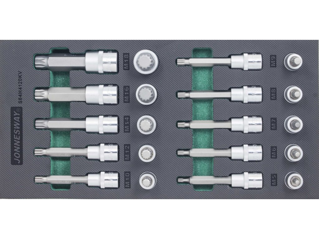 Modul pěnový - zástrčné hlavice XZN 1/2", M5 - M18, 20 ks - JONNESWAY S64H4120KV