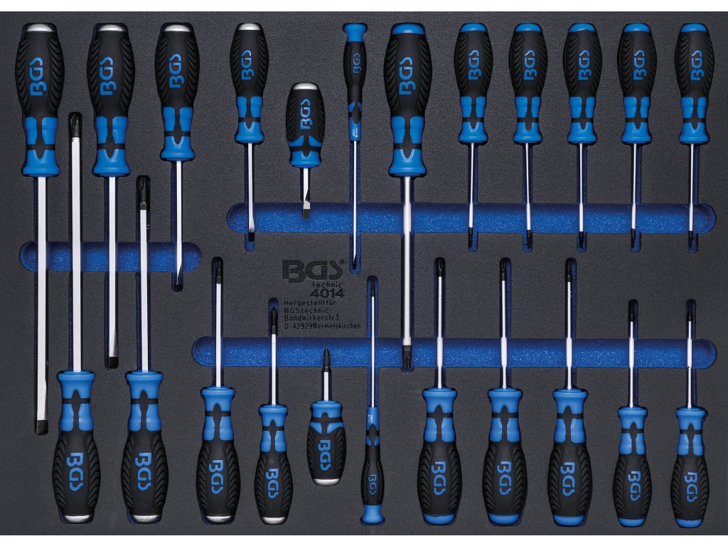 Křížové: PH0 x 100 mm, PH1 x 75 mm, PH2 x 38 mm, PH2 x 100 mm,PH3 x 150 mm, PH4 x 200 mm.