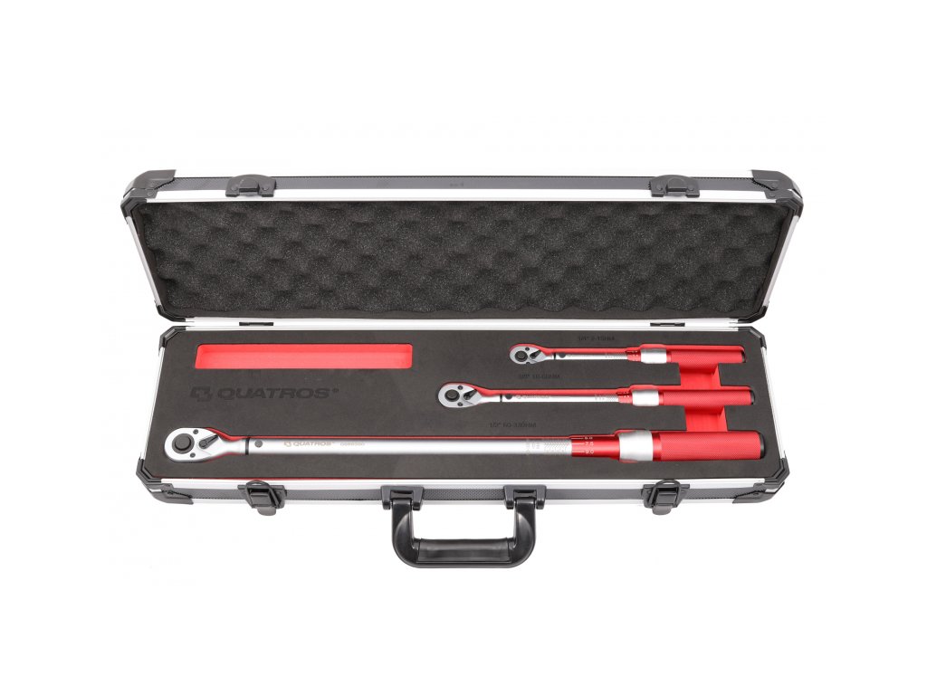 Sada tří momentových klíčů s celkovým rozsahem 2-330 Nm, přesnost klíčů +-3 %, sada 3 ks v plastovém kufříku – QUATROS QS59004