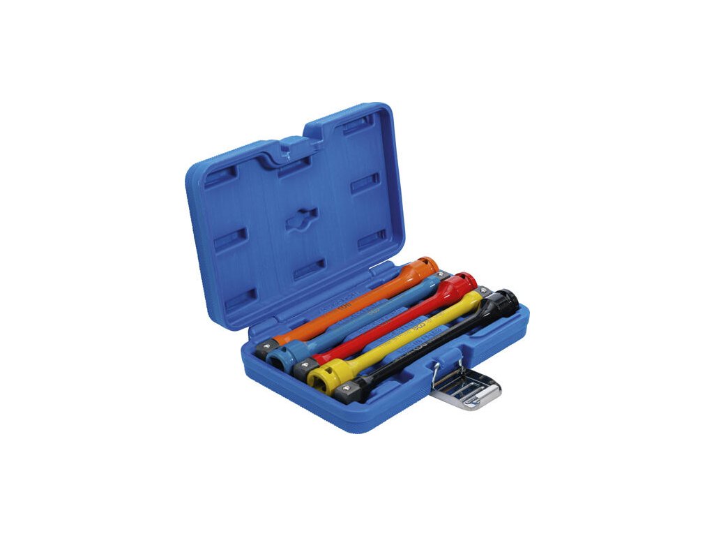 Momentové nástavce - prodloužení, vodicí 4hran 1/2“, pro momenty 100-150 Nm, jednotná délka 195 mm, sada 5 kusů v plastové kazetě - BGS technic 185