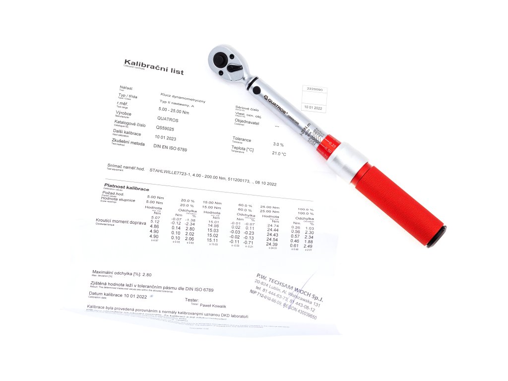 Momentový klíč 1/4" 5-25 Nm, zvýšená přesnost 3 %, s certifikátem - QUATROS QS59025