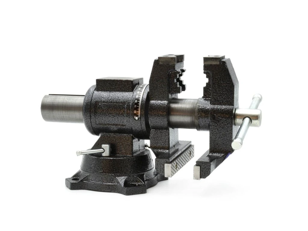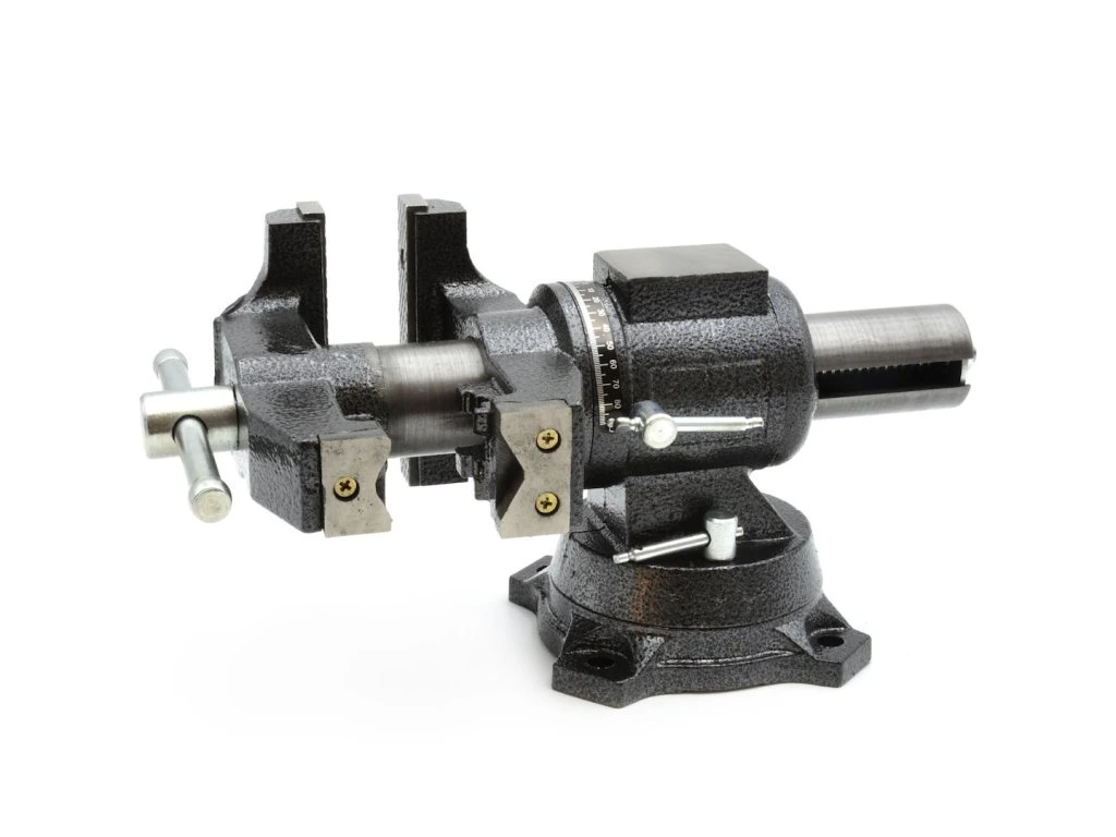 Multifunkční svěrák s možností otáčení o 360° ve vertikální i horizontální poloze, díky čemuž je tento svěrák velmi univerzálním nástrojem.