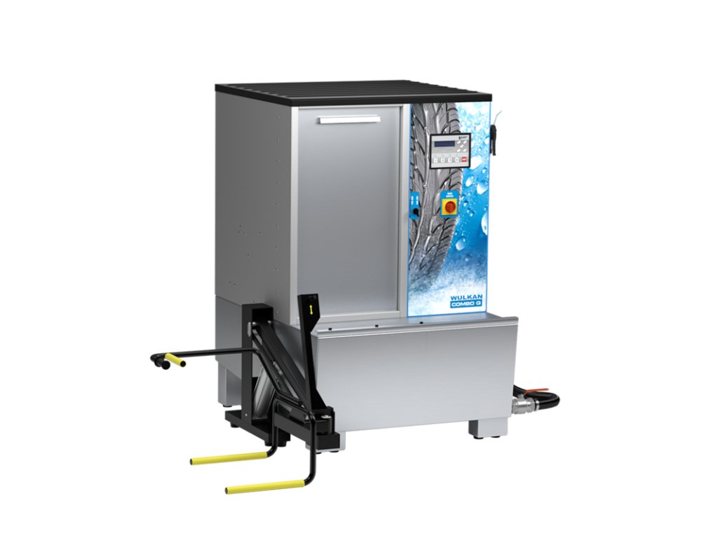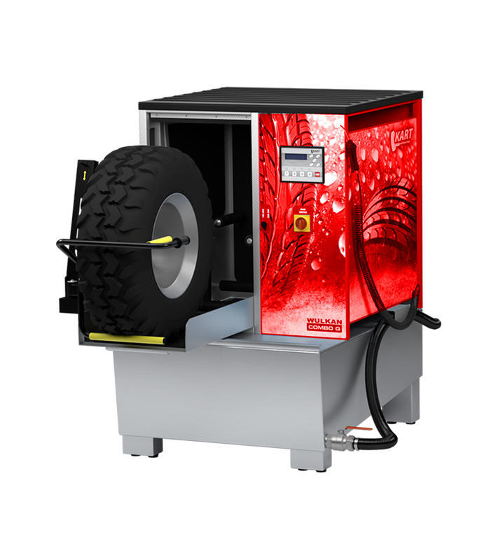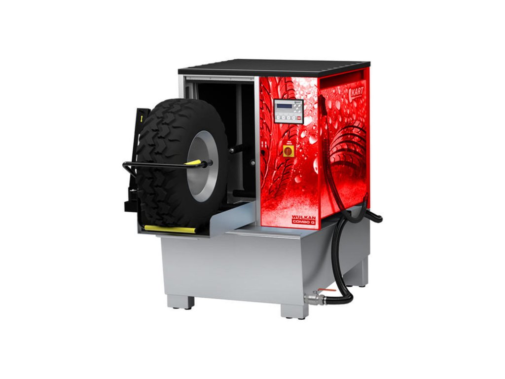 Mycí stroj – myčka na kola COMBO Q, pro mnoho druhů pneumatik, se vzduchovým otočným zvedákem a počítačovým ovládáním – Ferdus 24.07