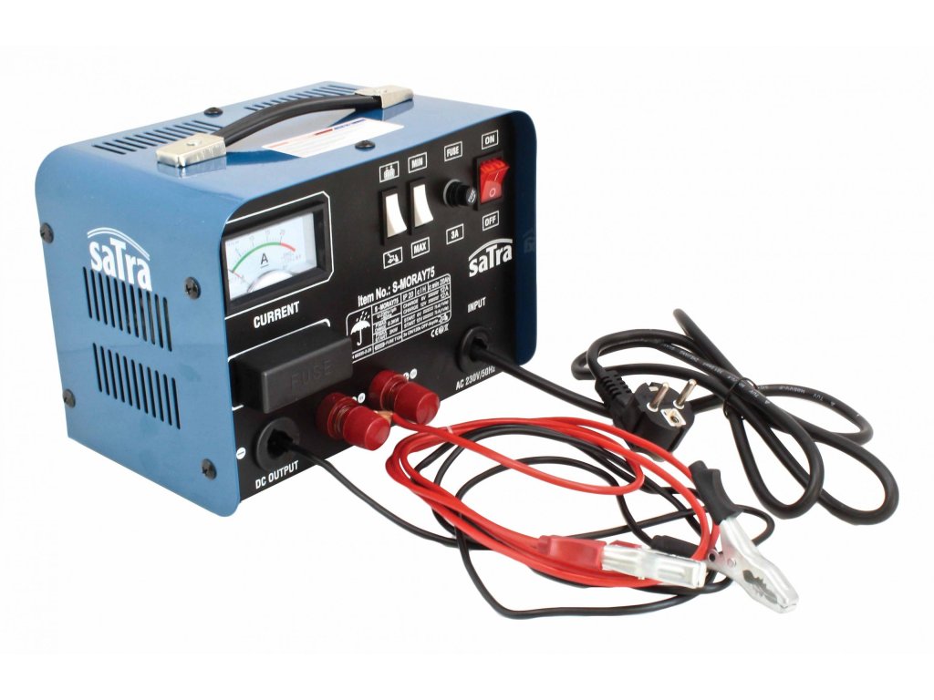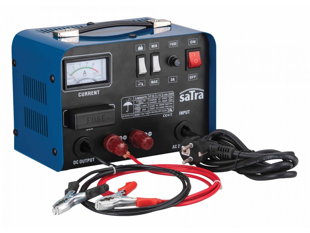 Autonabíječka – přístroj na nabíjení autobaterií (akumulátorů) 6 a 12 V a startování, přenosný – SATRA S-MORAY75