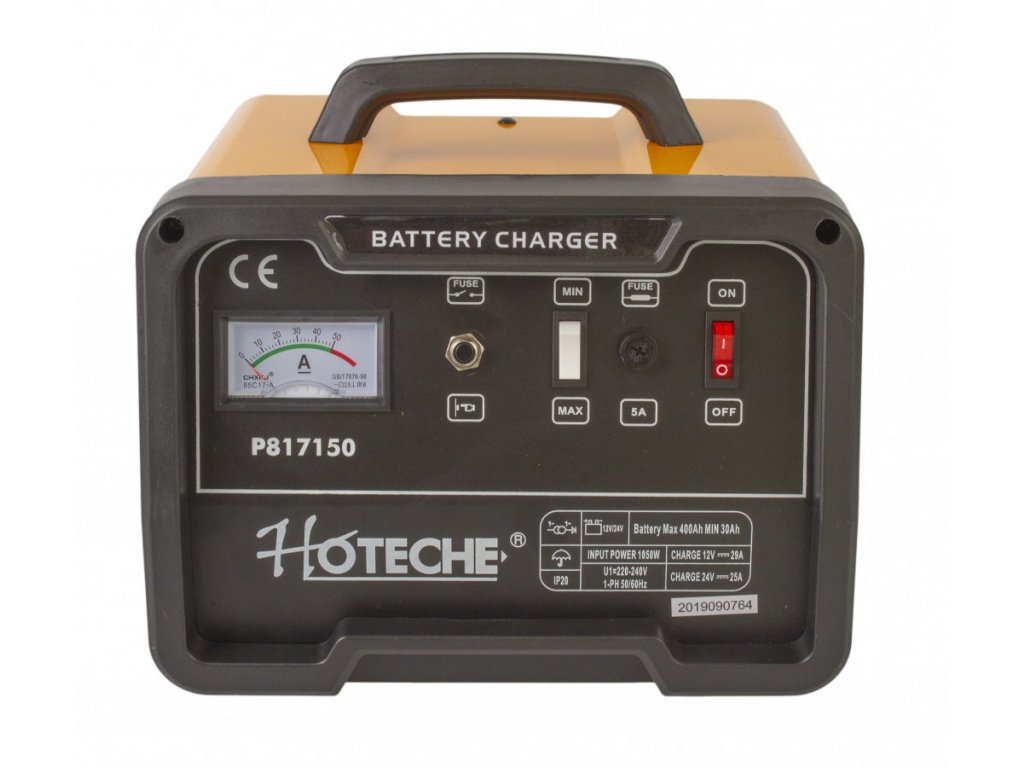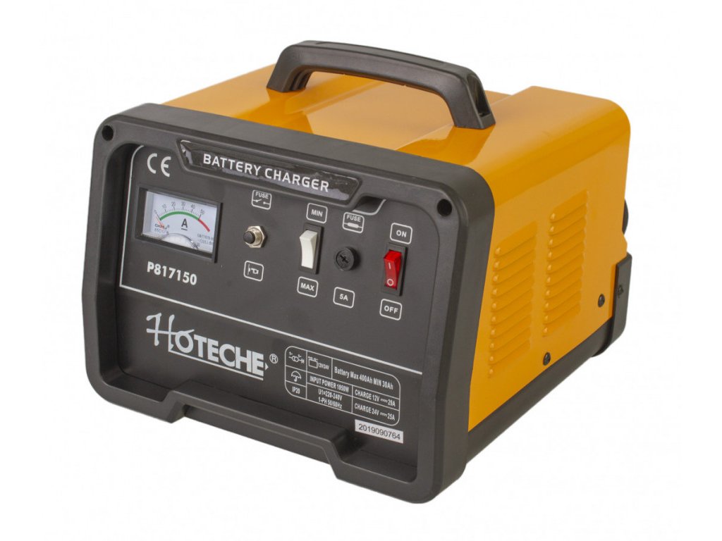 Nabíječka akumulátorů – autonabíječka, pro olověné autobaterie 12 a 24 V, nabíjecí proud 50 A, automatická, přenosná – Hoteche HTP817150