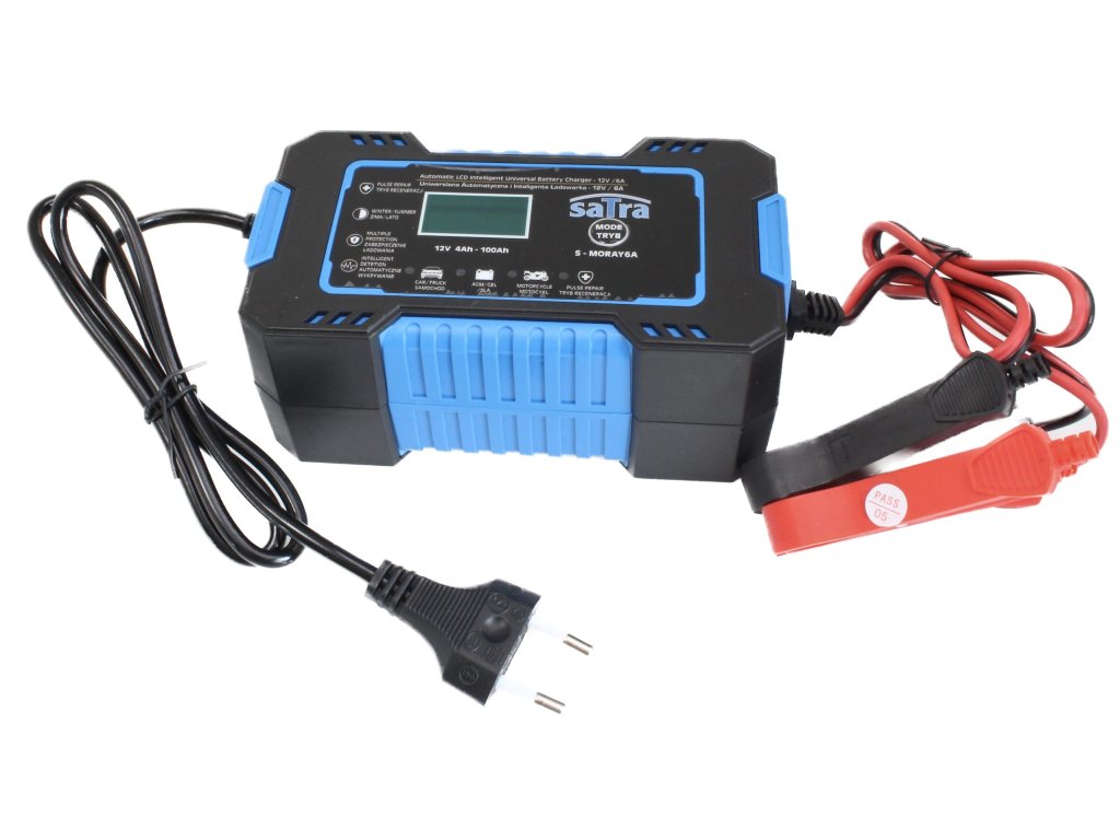 Auto nabíječka s LCD displejem na nabíjení autobaterií (akumulátorů) 12 V, 6A – SATRA S-MORAY6A.