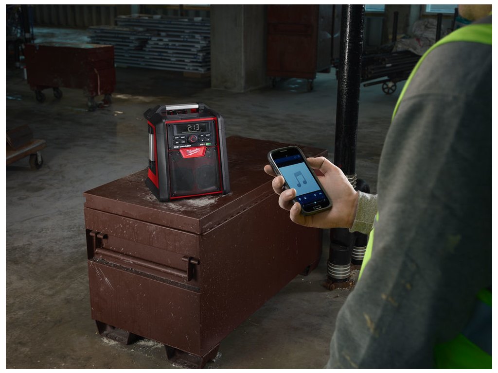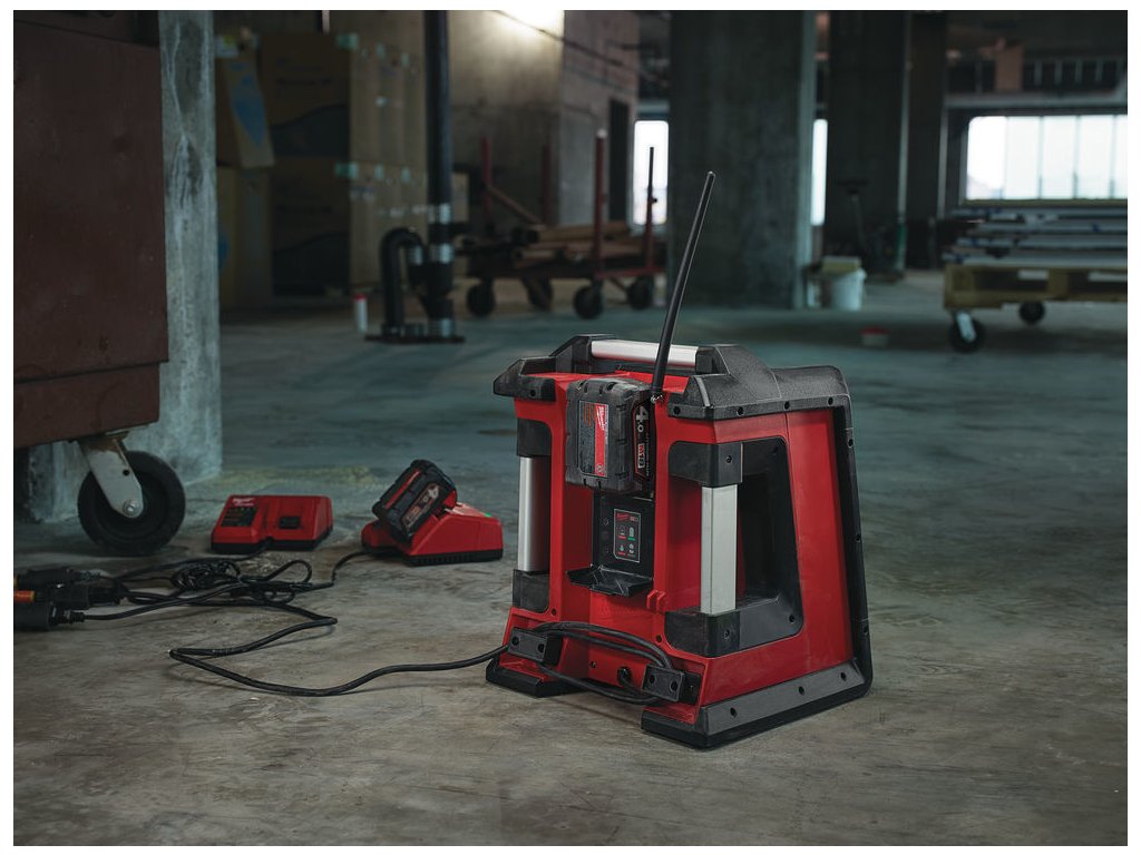 Nabíječka na 18V baterie do aku nářadí kombinovaná s AM/FM rádiem, výkon reproduktoru 40 wattů – Milwaukee M18 RC