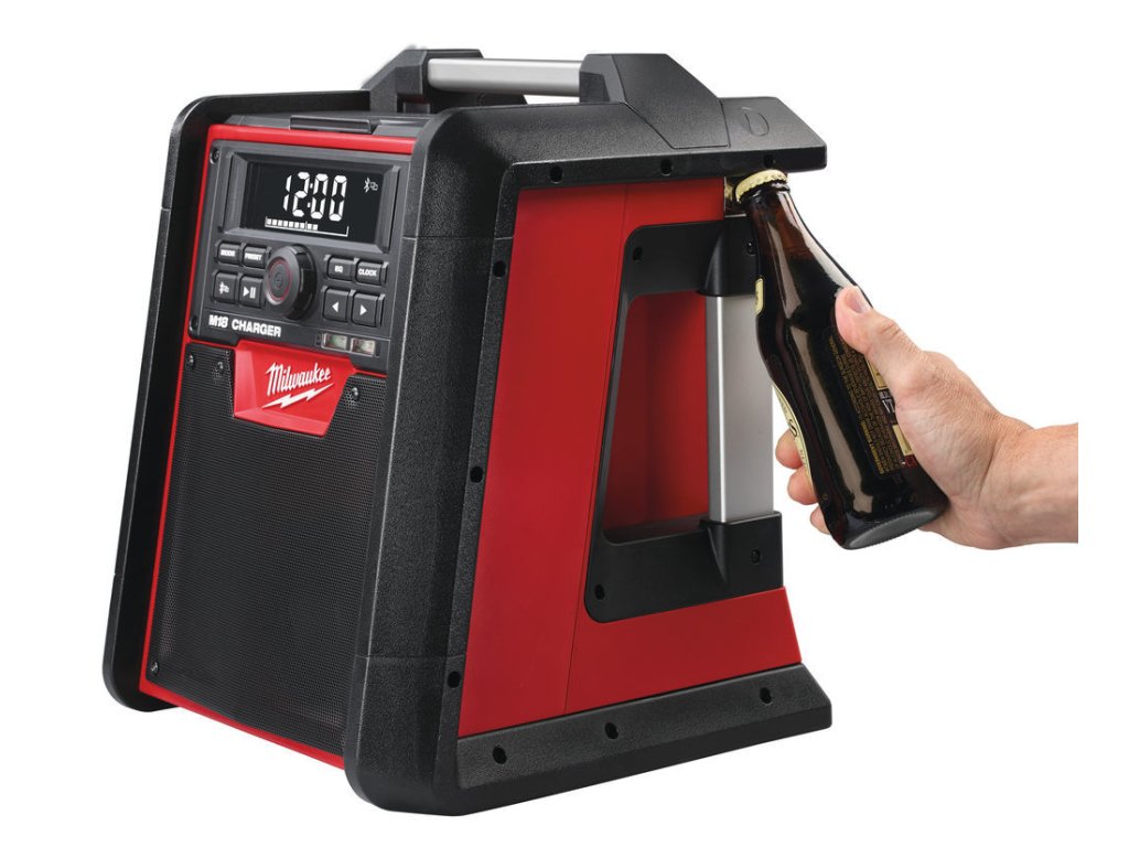 Praktická „radionabíječka“ pro stavby, dílny a mnohá další místa. Dokáže dobíjet energii do baterie pro aku nářadí a zároveň ozvučit pracoviště. Integrovaný otvírák na lahve představuje vtipný doplněk.