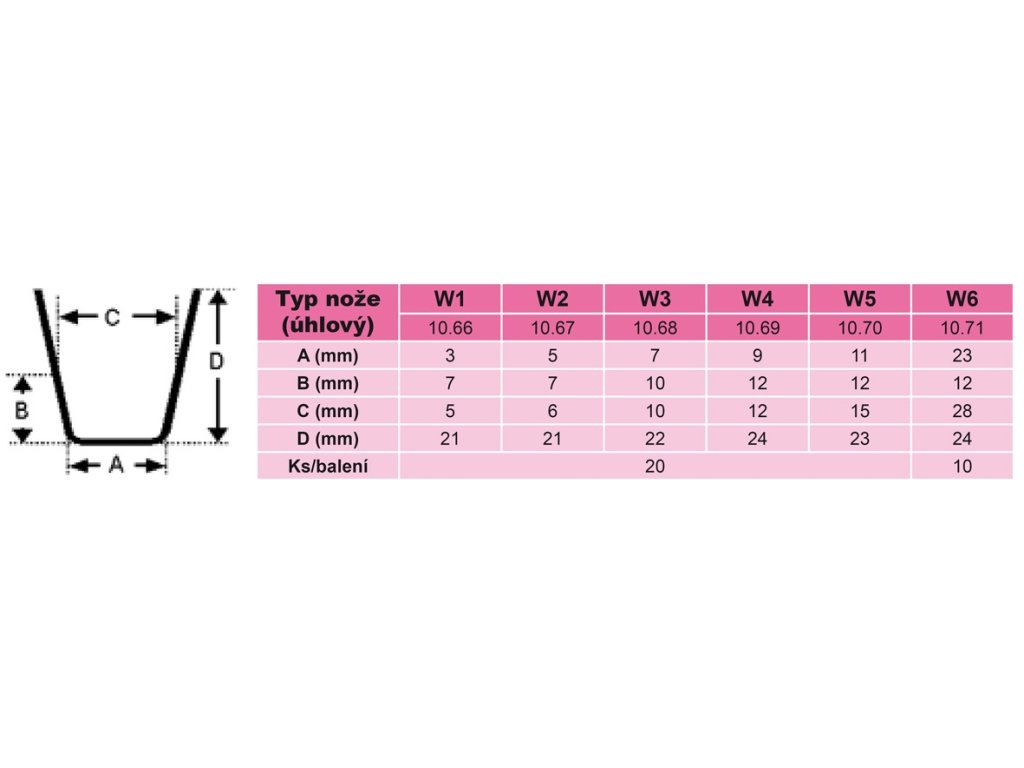 Náhradní prořezávací nože W1, úhlové, šířka 3 - 4 mm, balení 20 kusů