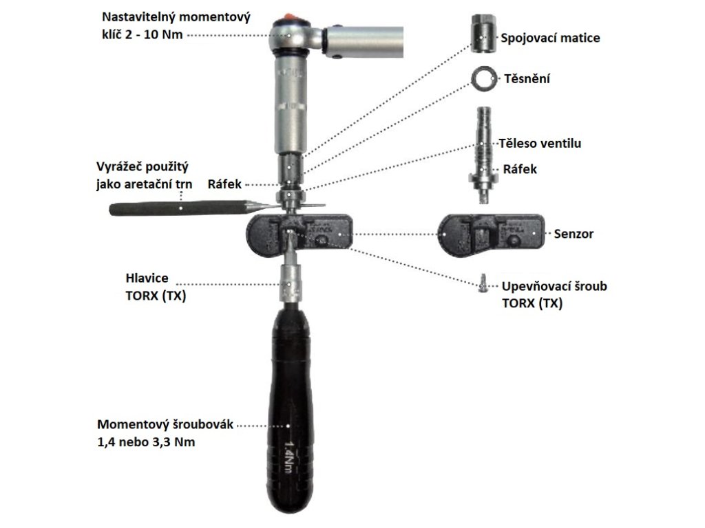 Nářadí na montáž a demontáž TPMS senzorů a ventilků, sada 15 ks - Kunzer