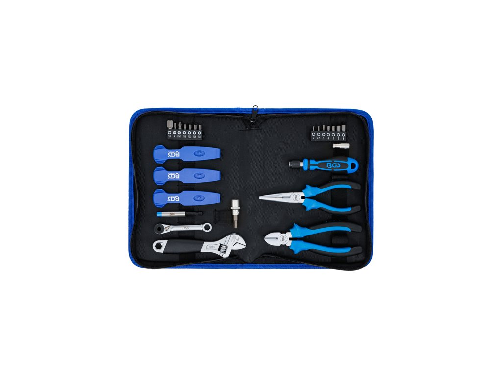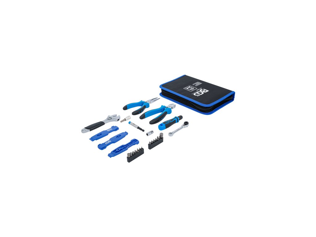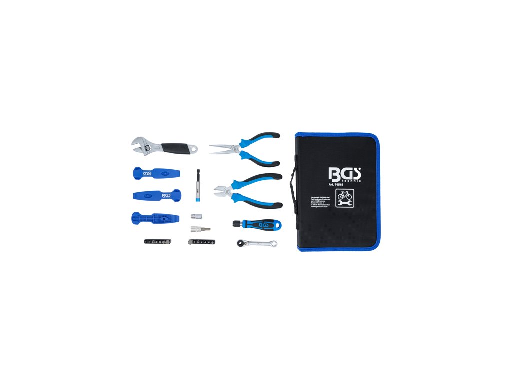 Praktická nouzová sada s nářadím na jízdní kolo na cesty, 26 ks nářadí – BGS Technic 74515