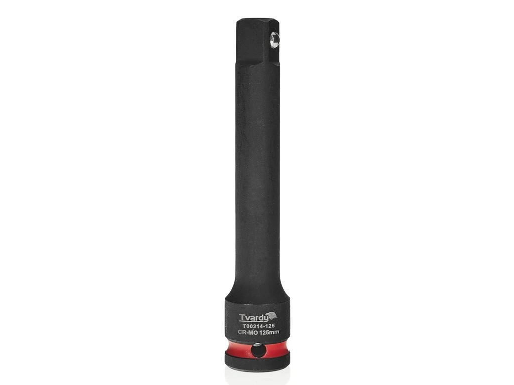 Profesionální prodlužovací tyč Tvardy 125 mm s pohonem 1/2", speciálně navržená pro použití s rázovými utahováky. Nezbytná, když se šroub nebo matice nachází na těžko přístupných místech, jako jsou hluboké výklenky motoru, zavěšení nebo ocelové konstrukce.