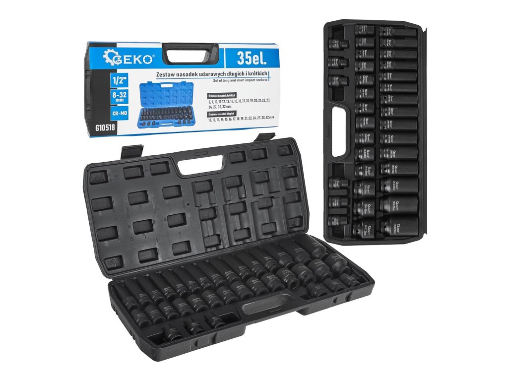 Sada rázových hlavic 1/2" 8-32mm dlouho + krátké (35 ks)