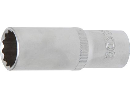 Prodloužená nástrčná 12hranná hlavice BGS technic Vroubkovaná Materiál: Chrom-vanadová ocel Zušlechtění povrchu: Matně chromováno Profil pohonu: Vnitřní čtyřhran