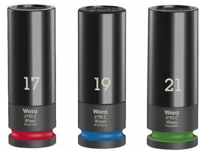 Nástrčné hlavice 1/2" Wera na disky kol vozidel Sada 3 ks nástrčných hlavic Impaktor na kola aut Vhodné pro použití s elektrickými a pneumatickými rázovými utahováky S...