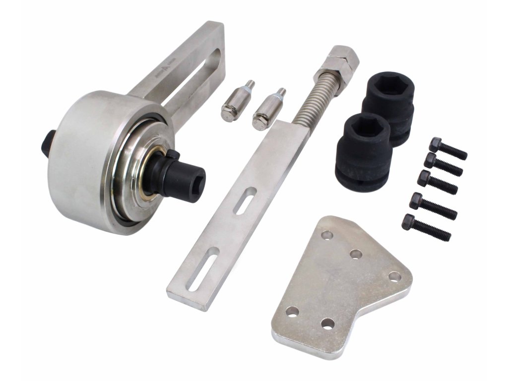 Speciální nástroj pro nastavení řemenice na „klice“ do správné montážní polohy, dotahování šroubů ve správném pořadí a pro jejich správné dotažení (řemenice pak není povolená ani přetažená).