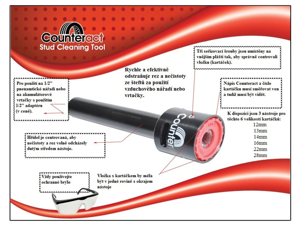 Nástroj - nástavec pro čištění závitů šteftů kol 12-16 mm, s kartáčem 13 mm - Counteract