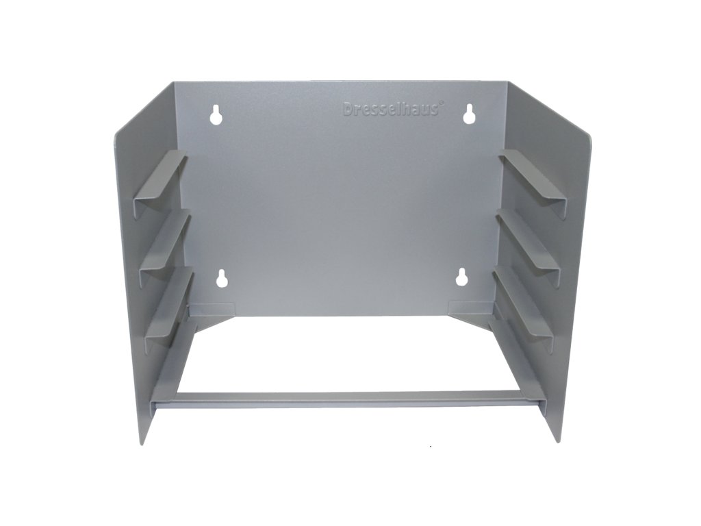 Vysoce praktický nástěnný regál pro uložení až 4 kufrů (kazet) s drobným spotřebním materiálem od výrobce Dresselhaus. Snadno se montuje na zeď pomocí 4 šroubů.