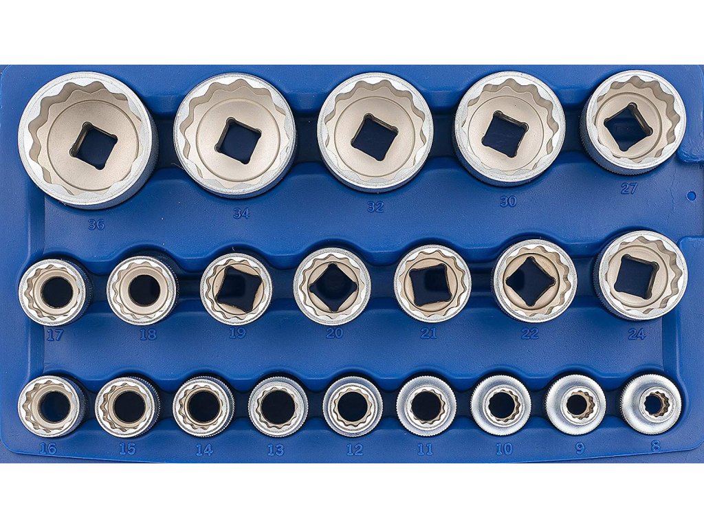 · Rozměry hlavic: 8, 9, 10, 11, 12, 13, 14, 15, 16, 17, 18, 19, 20, 21, 22, 24, 27, 30, 32, 34 a 36 mm