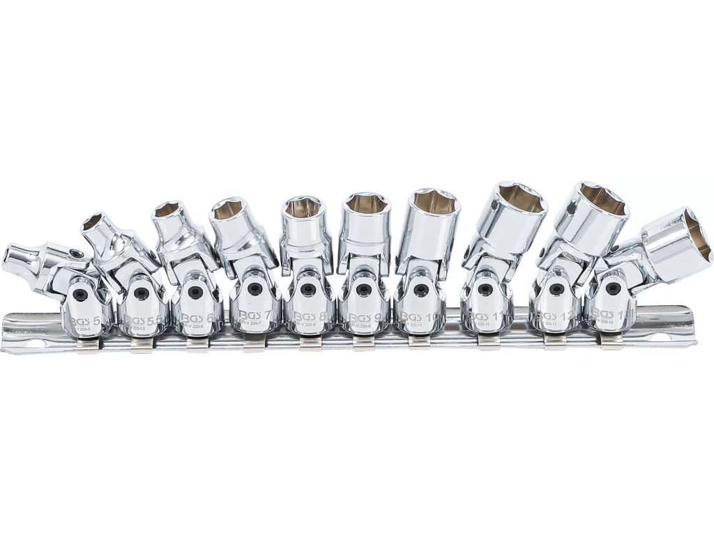 Nástrčné hlavice 1/4" 5-13 mm kloubové, sada 10 ks na liště - BGS 220