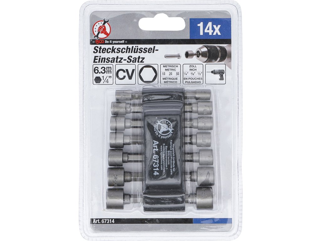 Nástrčné hlavice 1/4" 6hranné, metrické a palcové, sada 14 ks