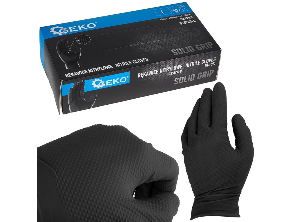 Nitrilové rukavice Solid Grip 3D, pevné, odolné chemikáliím, 50 ks, černé, velikost L - GE